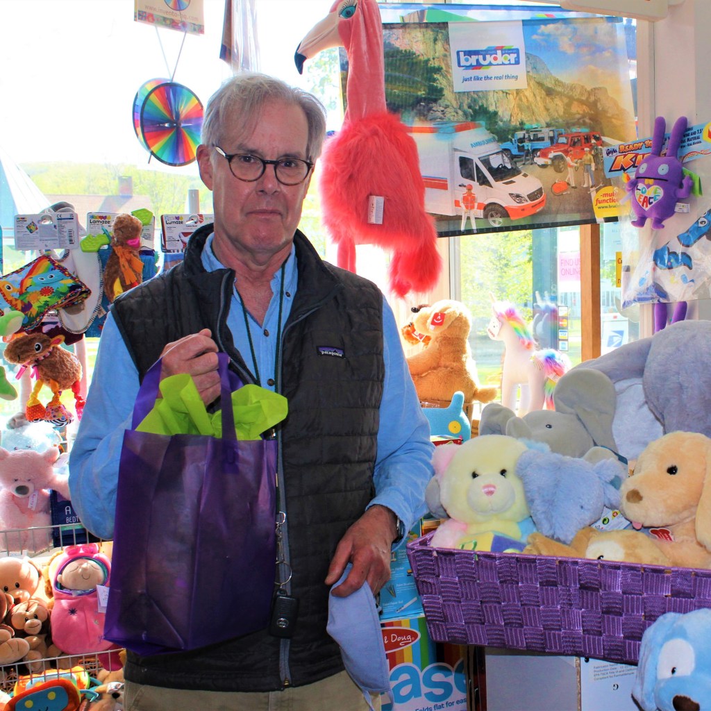 Jack Gilpin, a customer for 26 years, loves the great selection. He used to shop at the store for his three children and now buys toys for a grandchild and one on the way. “Today, I’m shopping for a friend’s newborn girl,” he shared, after he picked out a pink baby llama.