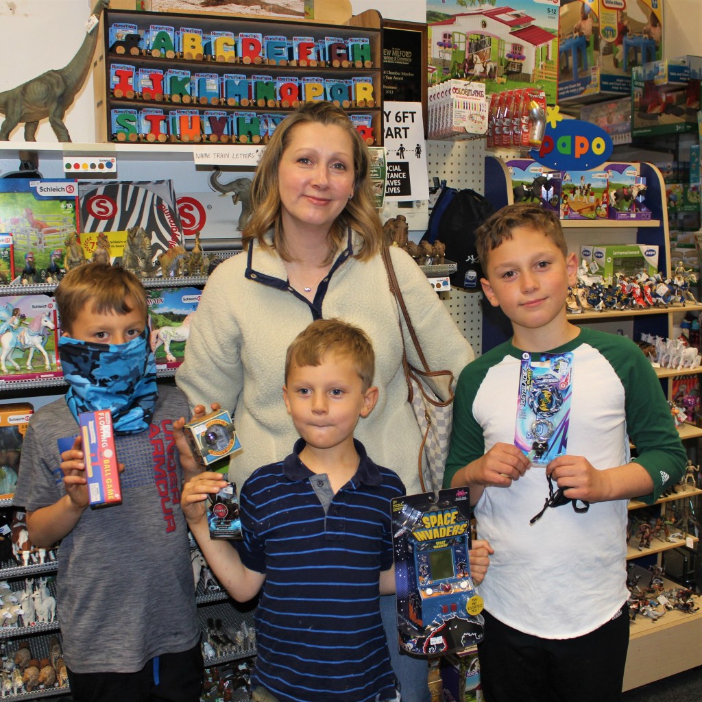 Deana May, raised in New Milford, took her three sons to Nordica Toys to shop with their “star money.” Alden picked out a Beyblade Burst, Ashton chose some magic toys, and Alex eyed a handheld Space Invaders game and Pokémon cards.