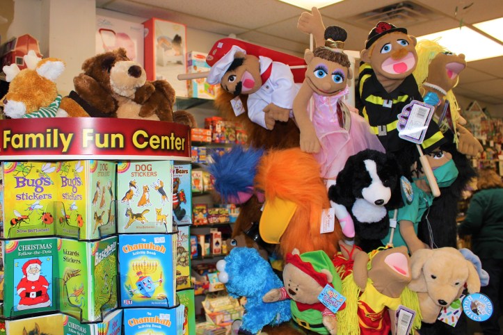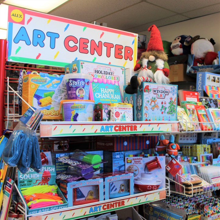 Fidget spinners, glittery finds, sparkly jewelry, tiny pullback cars and trucks, and sticker books are perfect for stocking stuffers & Hannukah gifts.